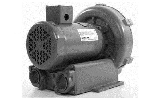 En un soplador regenerativo, el espacio de compresión se compone de un anillo hueco circular entre las puntas de los alabes y las paredes de la carcasa. En funcionamiento, la rotación del impulsor extrae aire del puerto de entrada hacia el espacio de compresión y lo mueve de manera radial hacia el exterior de la carcasa por fuerza centrífuga. La acción se denomina "regenerativa" porque el aire pasa a través de los alabes del impulsor y regresa a la base del siguiente alabe para crear una re-aceleración