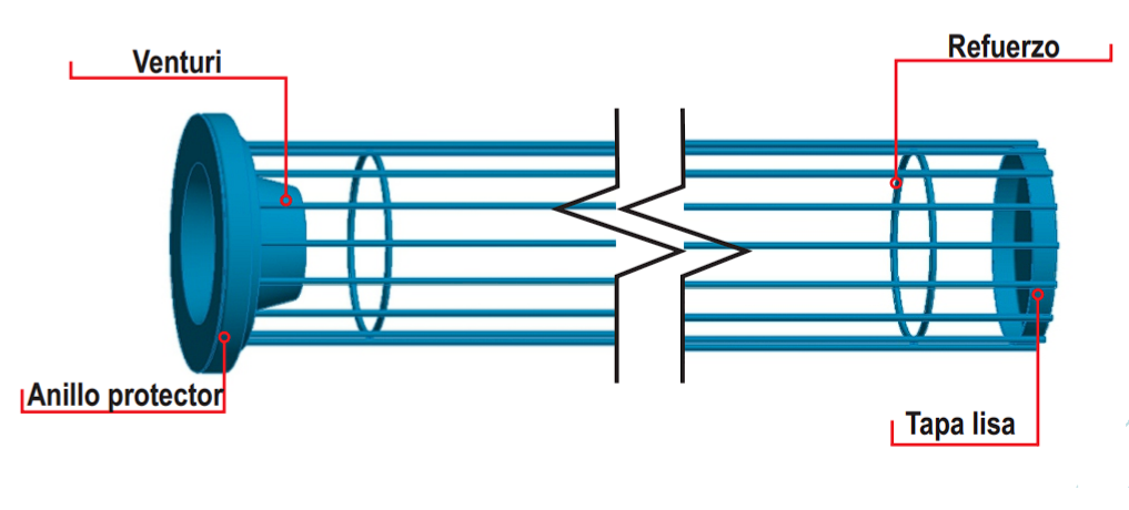 Las mangas filtrantes se suministran en el material seleccionado de acuerdo