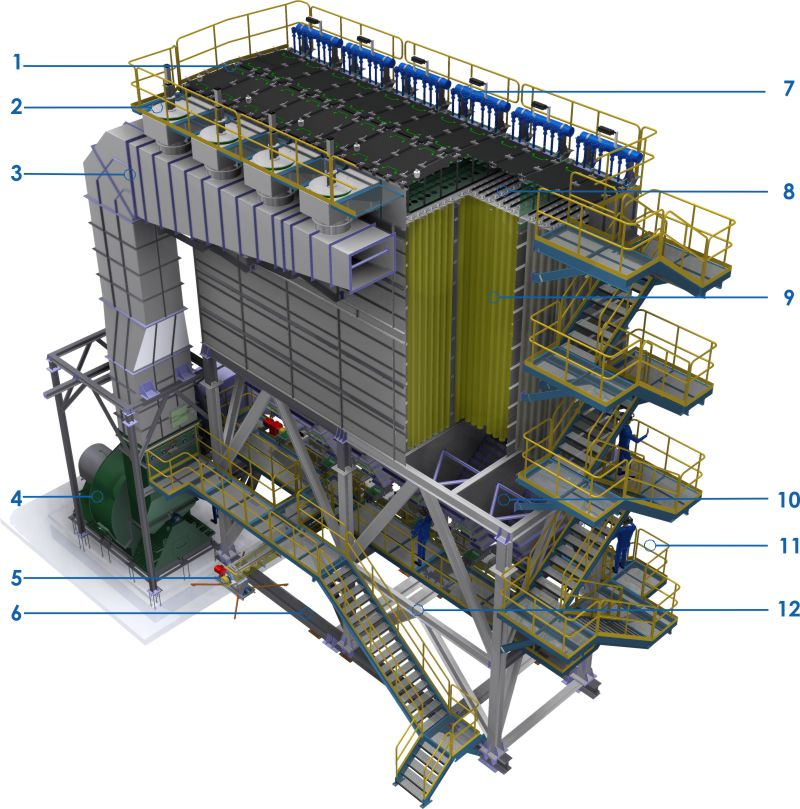 Dentro de las soluciones de limpieza de polvo, el filtro de mangas es el más eficiente de los conocidos hasta hoy y llega en algunos casos a operar con rendimientos de recolección del 99.99%, lo que permite cumplir con las normas de control ambiental locales