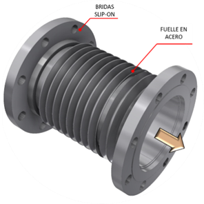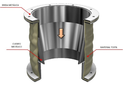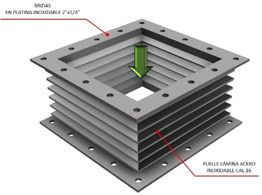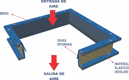Las juntas están compuestas por una cavidad de expansión formando un fuelle flexible en material textil Kevlar o lámina con un espesor de 3 mm, al interior cuentan con ductos internos deslizantes.