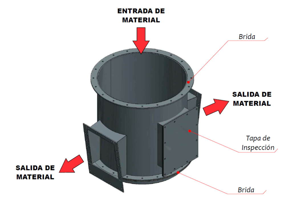 Este dispositivo se instala en los cambios de dirección de las secciones rectas de los aerodeslizadores. Consiste en una compuerta de inspección que se coloca en la parte superior y permite el ingreso de aire de fluidización por la parte inferior.